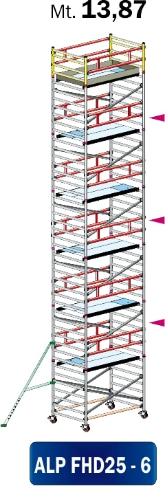 FRIGERIO CARPENTERIE - ponteggio alluminio professionale 255x135 con 6 piani e staffe in metallo m13,87.
