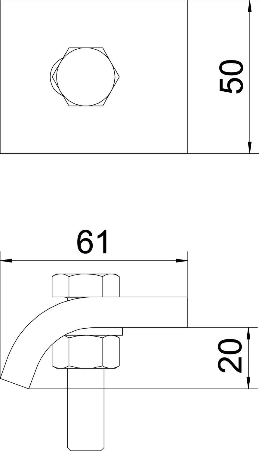 OBO BETTERMANN - Angolare di fissaggio con vite esagonale, h = 20 mm 60x50 in Acciaio zincato a caldo per immersione.