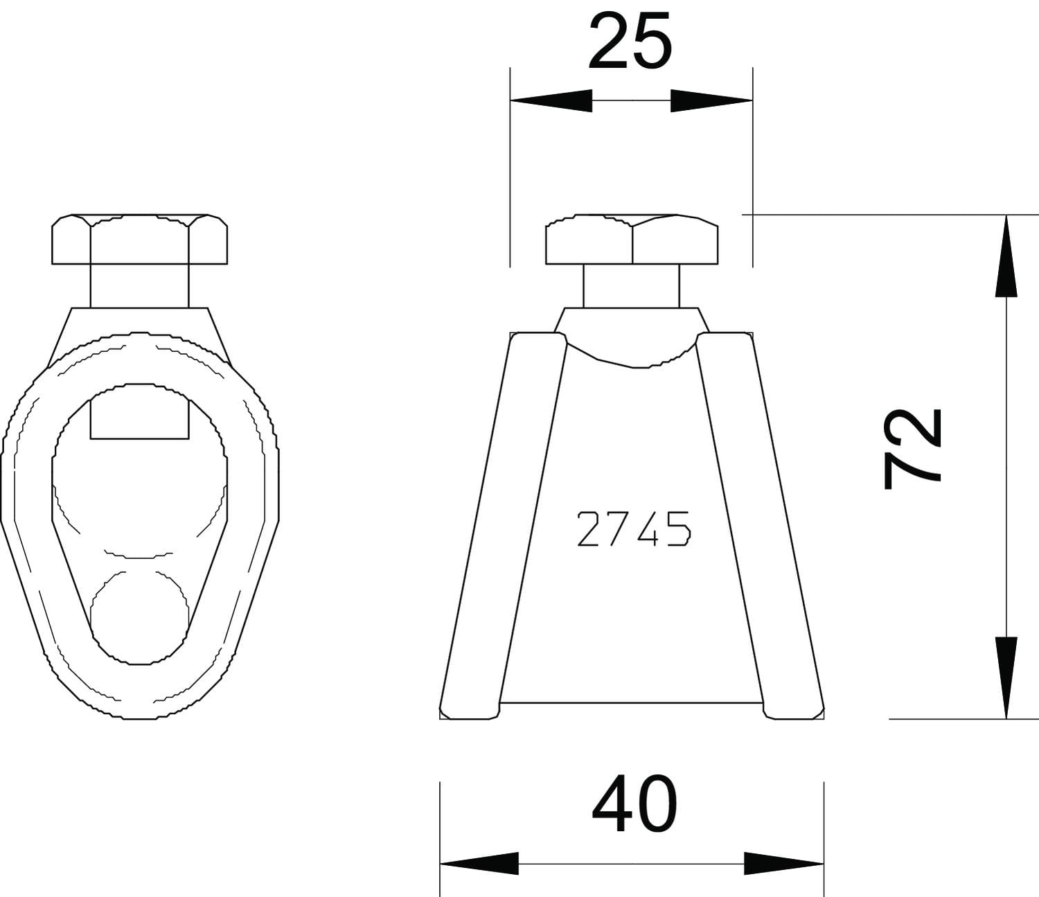 • per dispersori Ø 20 o cavi con sezione di 95 mm² • per giunzione di tondi Rd 7-12,5 con viti a testa esagonale M10 x 25 in rame (Cu)