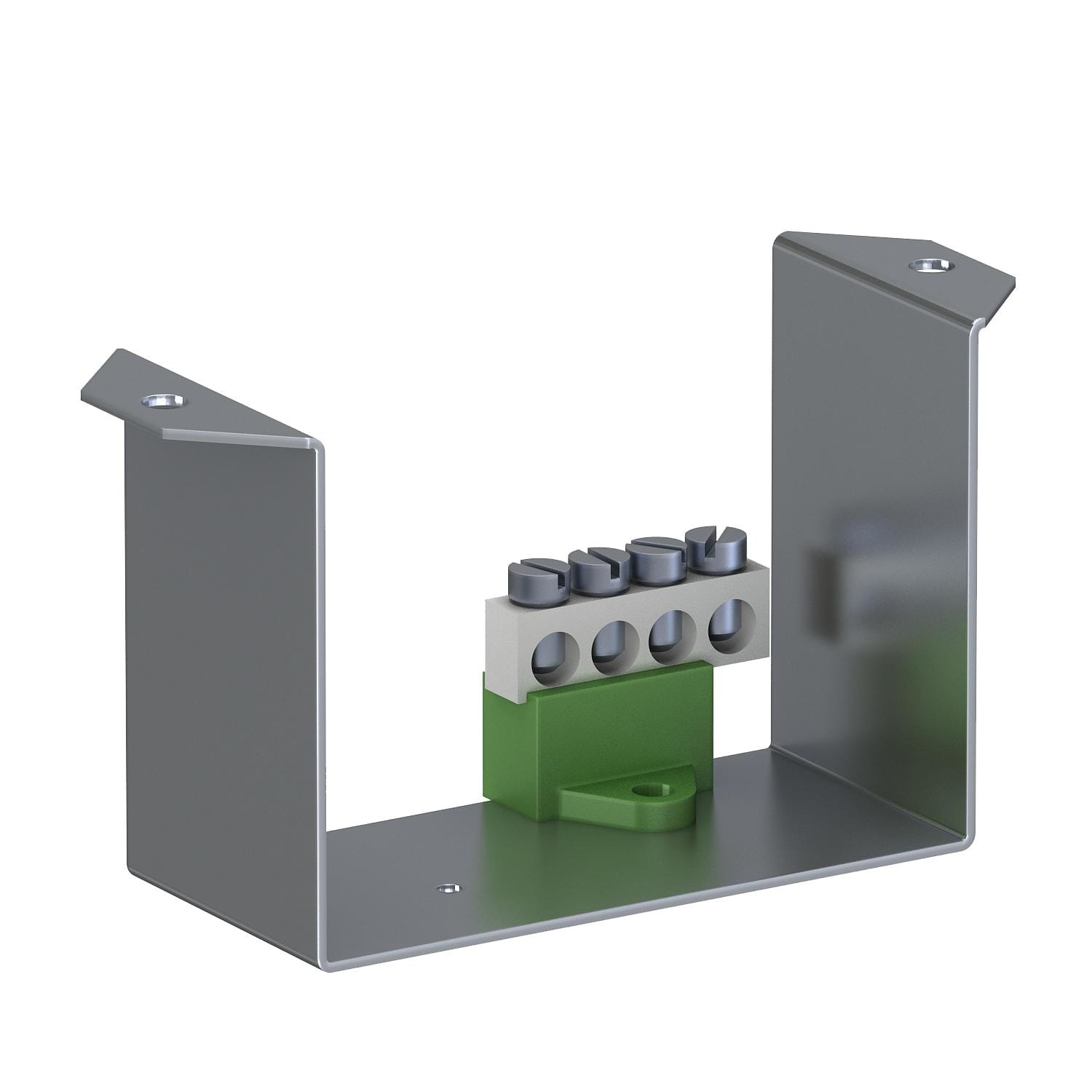 Supporto con morsettiera PE per il montaggio di interruttori di sicurezza FI, composto da: - elemento di fondo con guida a cappello da 35 mm e morsettiera PE 4 x 10 mm² - Materiale di fissaggio