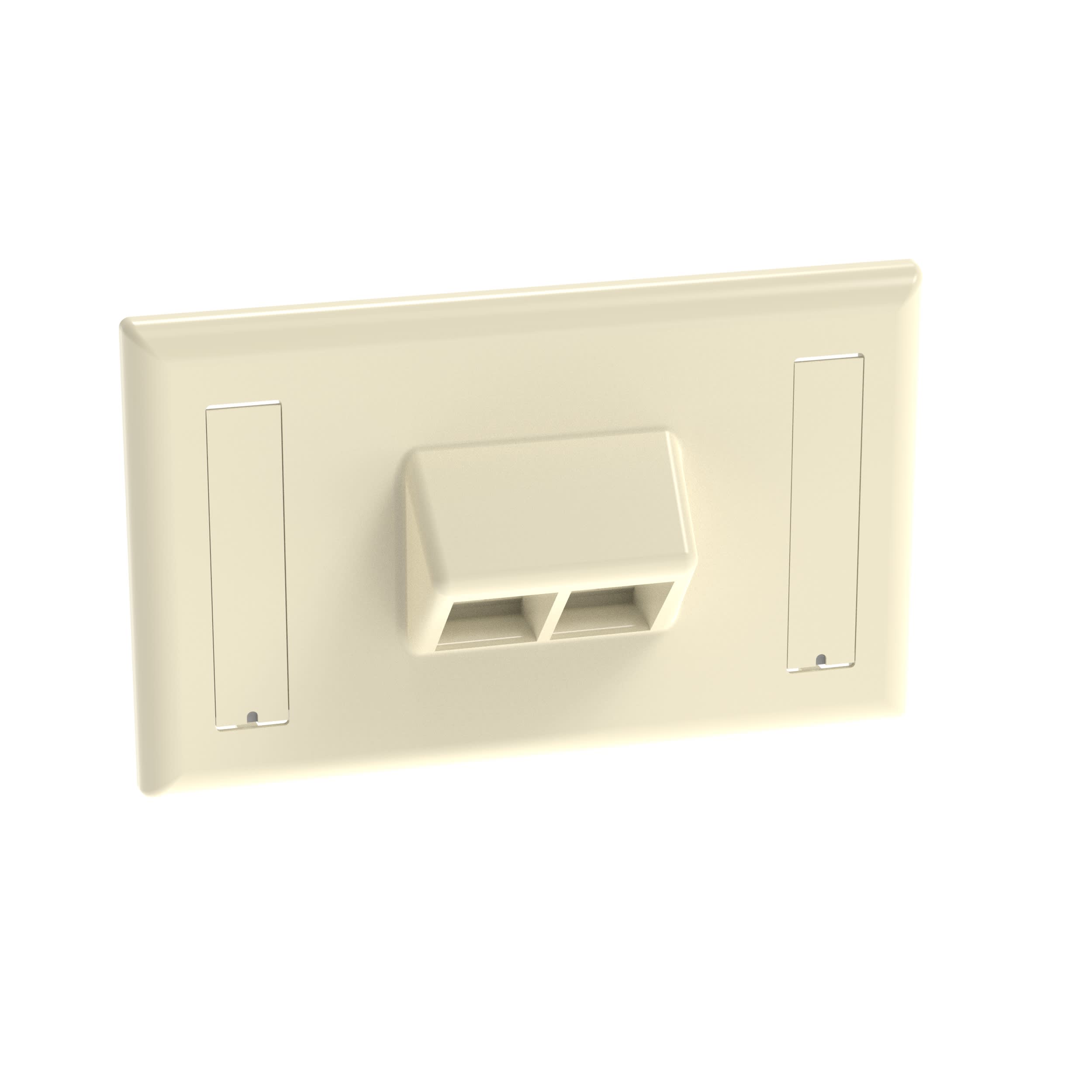 The NetKey® Faceplate accepts two keystone modules. The faceplate is single gang and mounts horizontally to a NEMA standard single gang opening. The faceplate includes a label pocket for easy identification and is electric ivory.