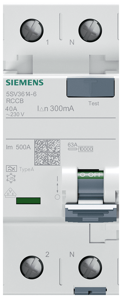 SIEMENS - Interruttore differenziale, a 2 poli, tipo A, In: 40 A, 300 mA, Un AC: 230 V