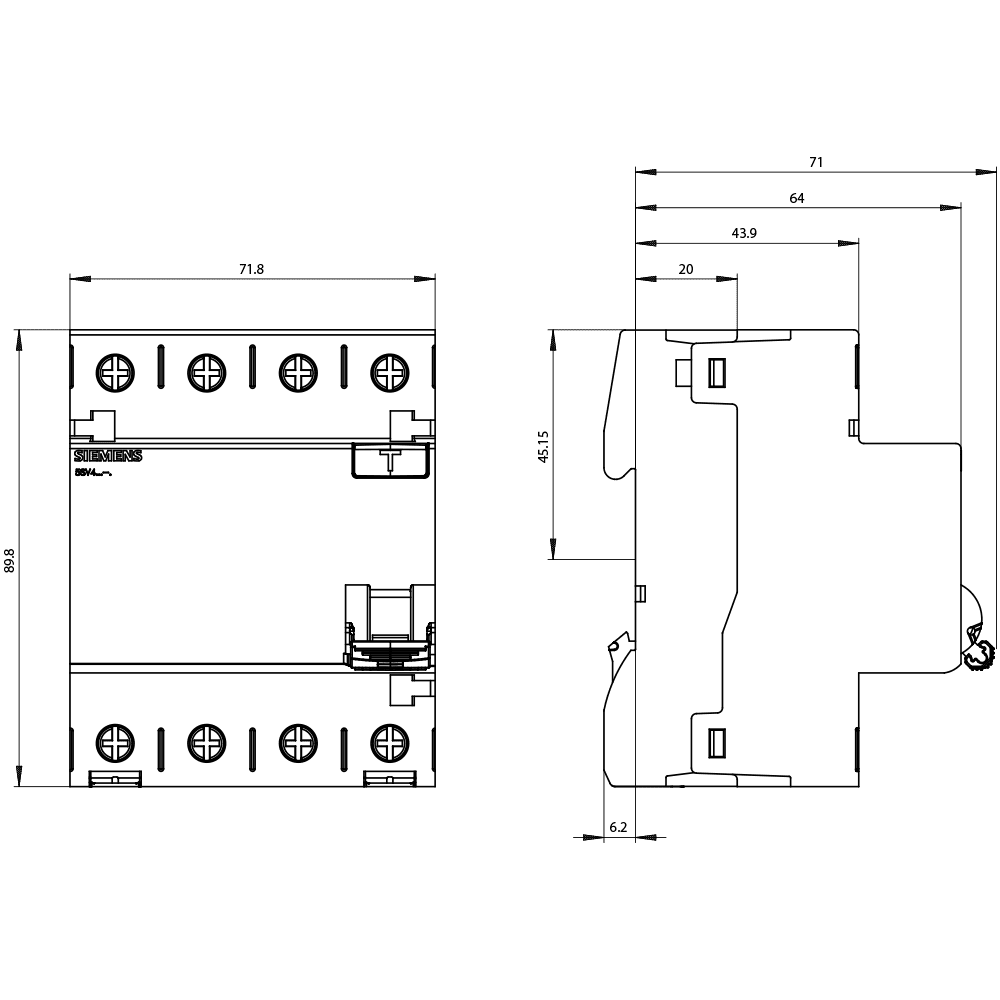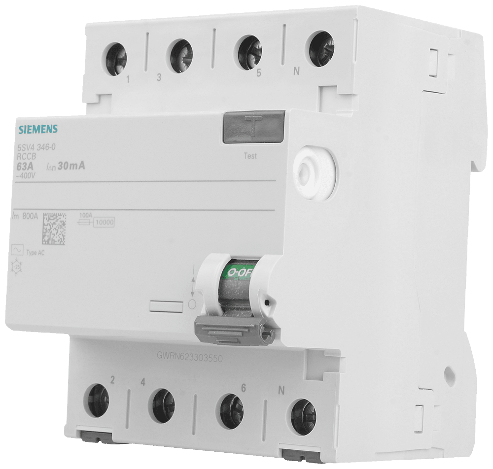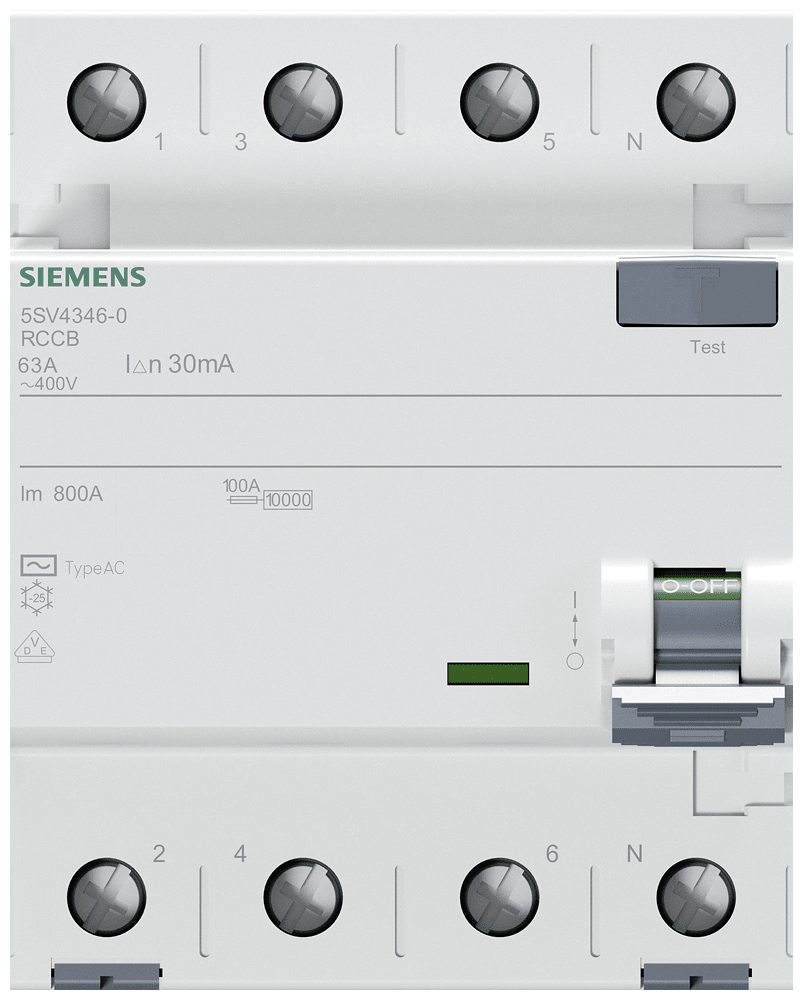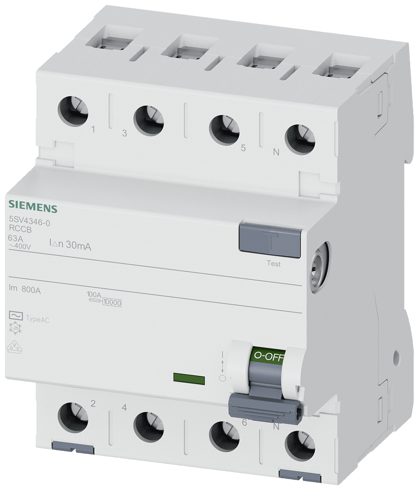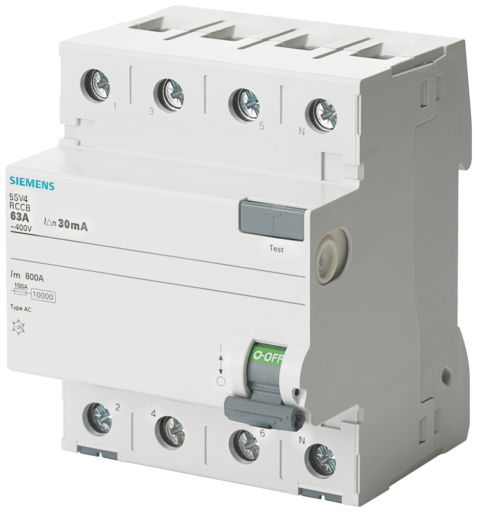 SIEMENS - Interruttore differenziale, a 4 poli, tipo AC, In: 63 A, 30 mA, Un AC: 400 V