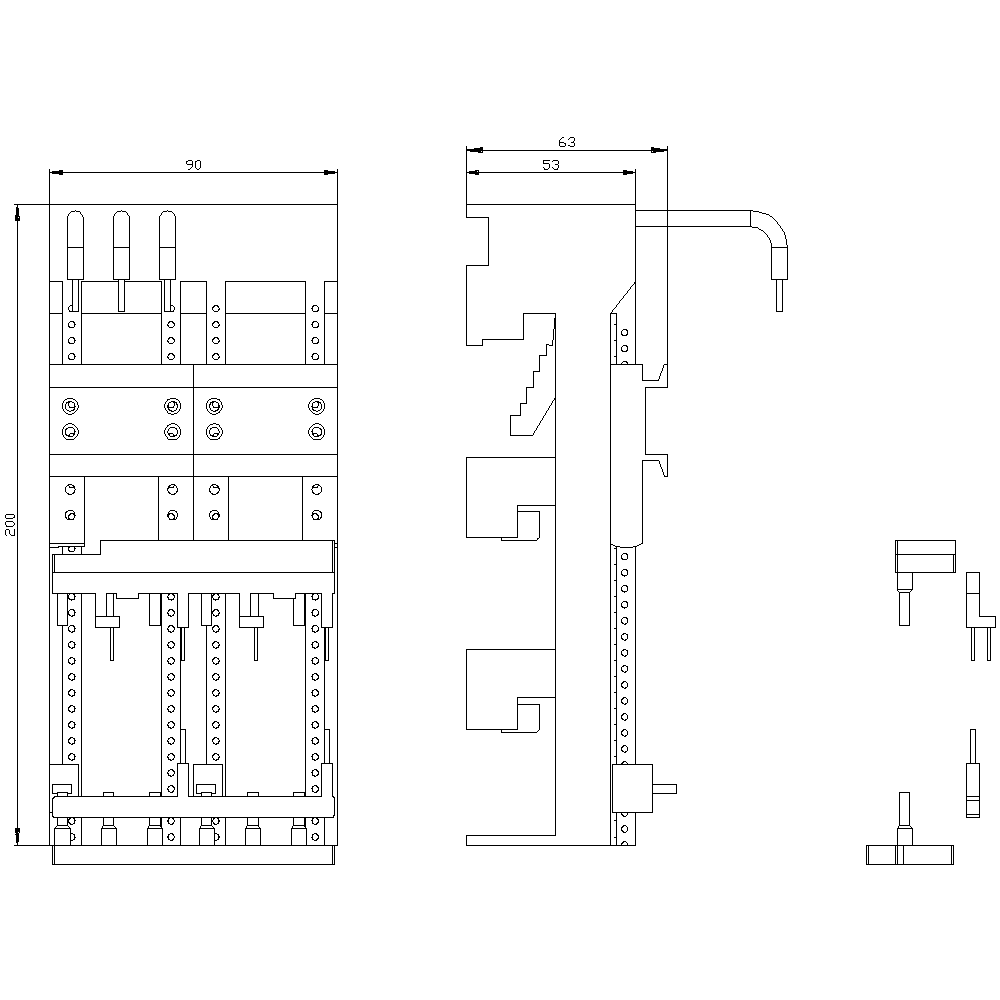 kit di cablaggio per collegamento a vite elettrico e meccanico completo per partenze senza fusibile per interruttori automatici S00, contattore S0 per sistema di sbarre collettrici 60 mm consiste di modulo di cablaggio adattatore per sbarre collettrici portapparecchi e moduli laterali Semplice, efficiente, sempre attuale - il sistema modulare SIRIUS.