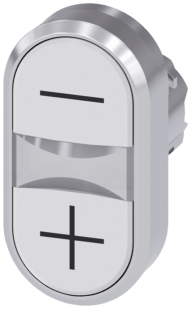 pulsante doppio, 22 mm, rotondo, in metallo, lucido, bianco: -, bianco: +, bottoni, piatto Pulsante doppio SIRIUS ACT per la realizzazione di due funzioni di commutazione ad impulso in un punto di comando. Siemens offre, sotto il nome commerciale SIRIUS ACT, un portfolio esclusivo di dispositivi di comando e segnalazione con omologazioni di prodotto per il mercato mondiale in tre moderne serie di design in robusto metallo puro e plastica pregiata.L'innovativo concetto di innesto a scatto semplifica talmente il montaggio che per eseguirlo basta una sola mano e non servono attrezzi speciali. Peri fori di montaggio sono sufficienti semplici fori non scanalati, essendo già integrata una protezione antirotazione al 100 %.Grazie al grado di protezione elevato i robusti apparecchi sono adatti all'impiego industriale e in ambiente esterno. È persino possibile la pulizia con getto ad alta pressione. Né polvere, né oli, né liscivia possono comprometterne il funzionamento affidabile.Oltre che con il cablaggio standard, gli apparecchi possono essere collegati al controllore anche tramite PROFINET, AS-Interface oppure IO-Link. Potete così ridurre il vostro onere di cablaggio, minimizzare le fonti di errore e ottenere maggiore flessibilità.Il configuratore online grafico supporta in modo confortevole la scelta e l'ordinazione di singoli apparecchi, pulsantiere e iscrizioni. È disponibile una documentazione completa (ad es. manuale, dati 3D, schema di collegamento). Esecuzioni fornibili: diverse combinazioni di colori, luminoso/non luminoso, con/senza iscrizione, diverse altezze di bottone. Avvertenza: Apparecchio singolo, supporti e moduli devono essere ordinati separatamente. SIRIUS ACT - Performance in Action nel comando e nella segnalazione. Semplici da montare, altamente performanti, semplicemente perfetti.