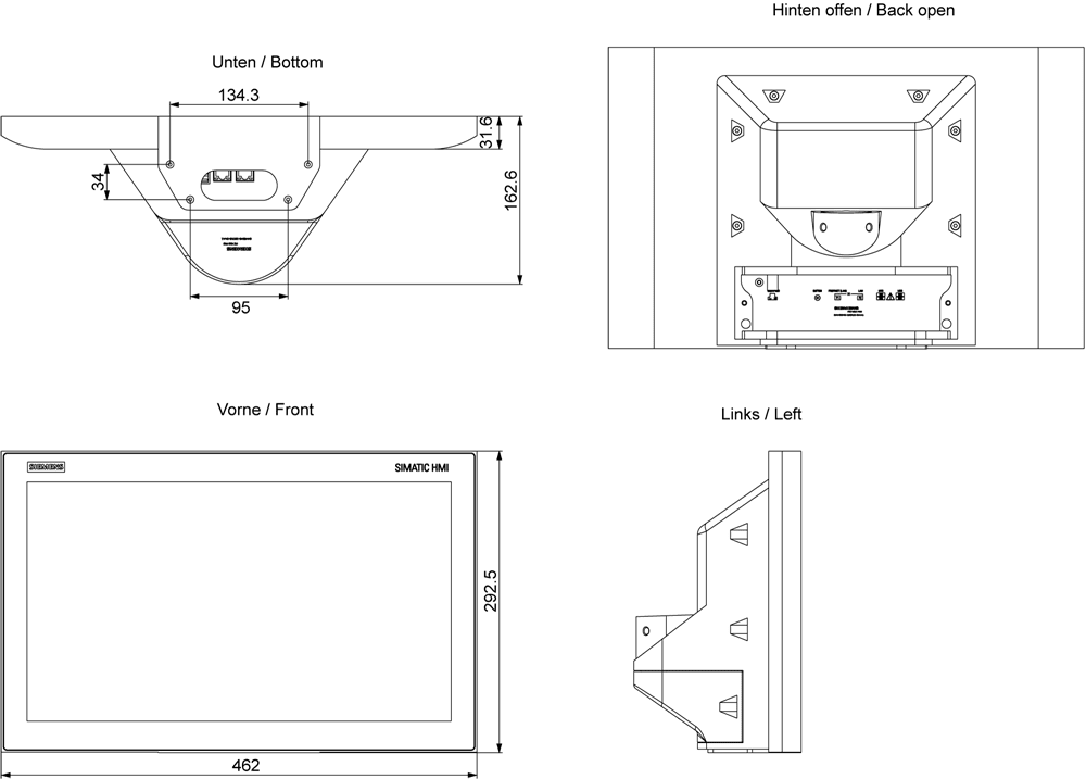 SIEMENS - SIMATIC HMI ITC1900 V3 PRO design standard braccio di sostegno con elemento di ampliamento