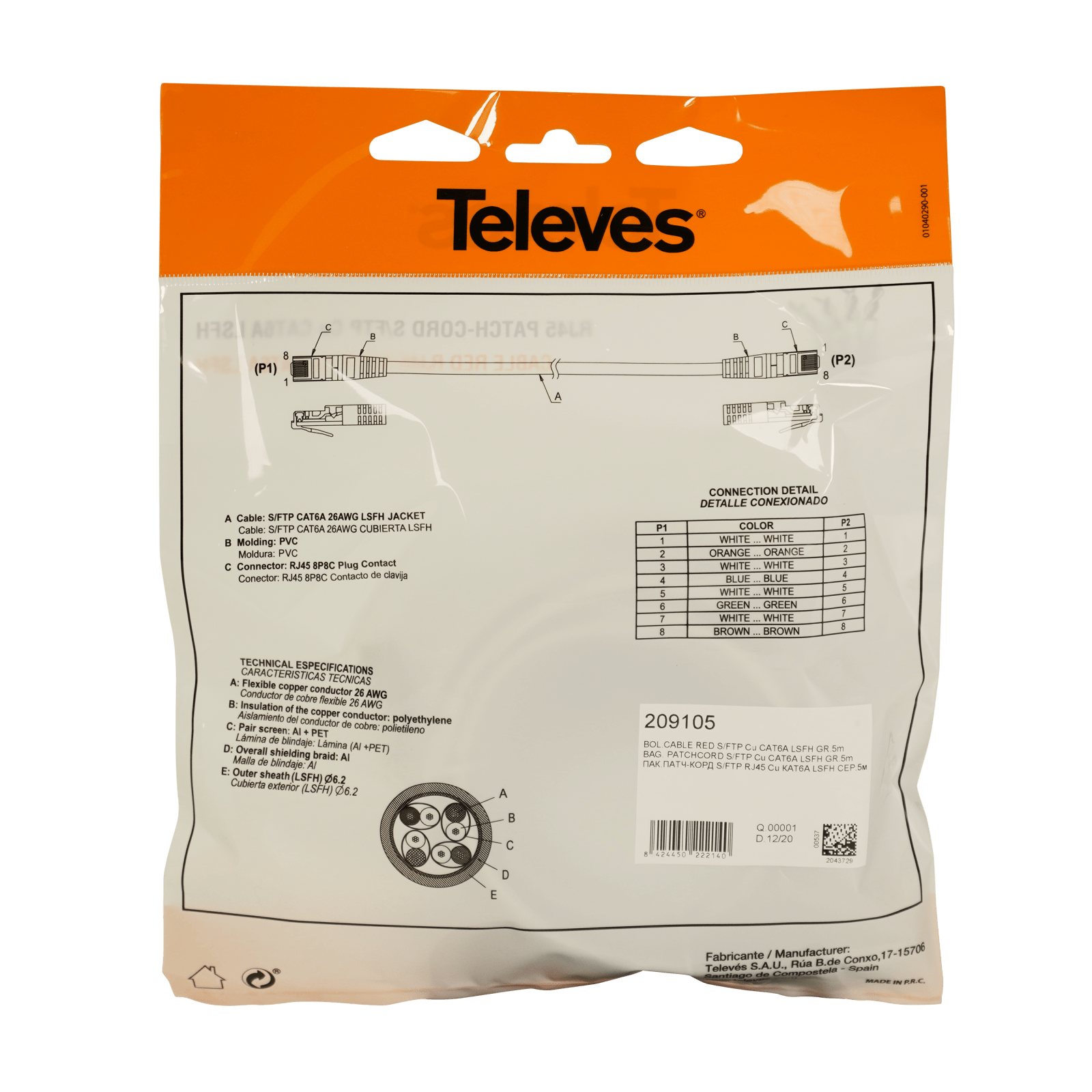 TELEVES - Cavo patch Ethernet Cat 6A S/FTP, CU, LSFH, 5M, grigio, DIY-GRI.