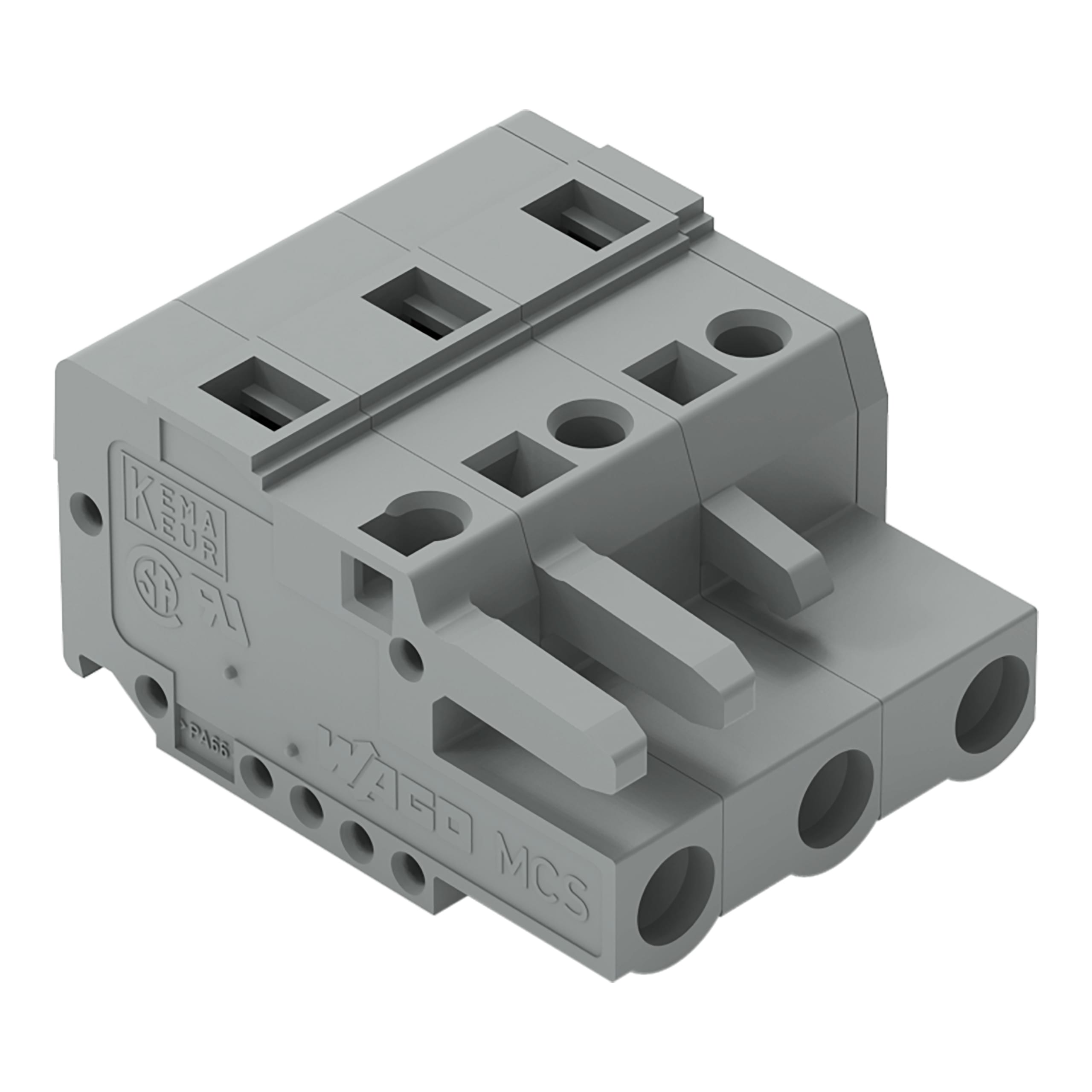 Spina femmina per 1 conduttore. CAGE CLAMP®. 2,5 mm2. Passo pin 7,5 mm. 3 poli. 2,50 mm2. grigio