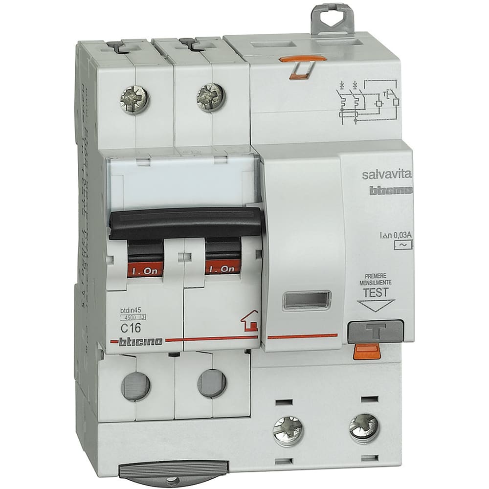 BTICINO - Interruttore magnetotermico differenziale BTDIN-RS 2P tipo AC - In= 16A - Idn= 0.03A GC8230AC16